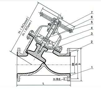 部件列表: 1、阀体 2、阀体衬里 3、隔膜 4、阀瓣 5、阀杆 6、阀盖 7、手轮